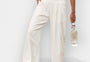 Disse bukser tilbyder den perfekte balance mellem komfort og elegance. Med elastik i taljen og en bred, flydende linje omfavner de kroppen uden tryk, hvilket sikrer bevægelsesfrihed og stil. Ideelle til afslappede dage, men også til mere velovervejede looks.