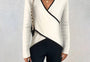 Opgrader din garderobe med Yzabelle Omslags-strik med kontrastkant—et must-have for ubesværet sofistikation!